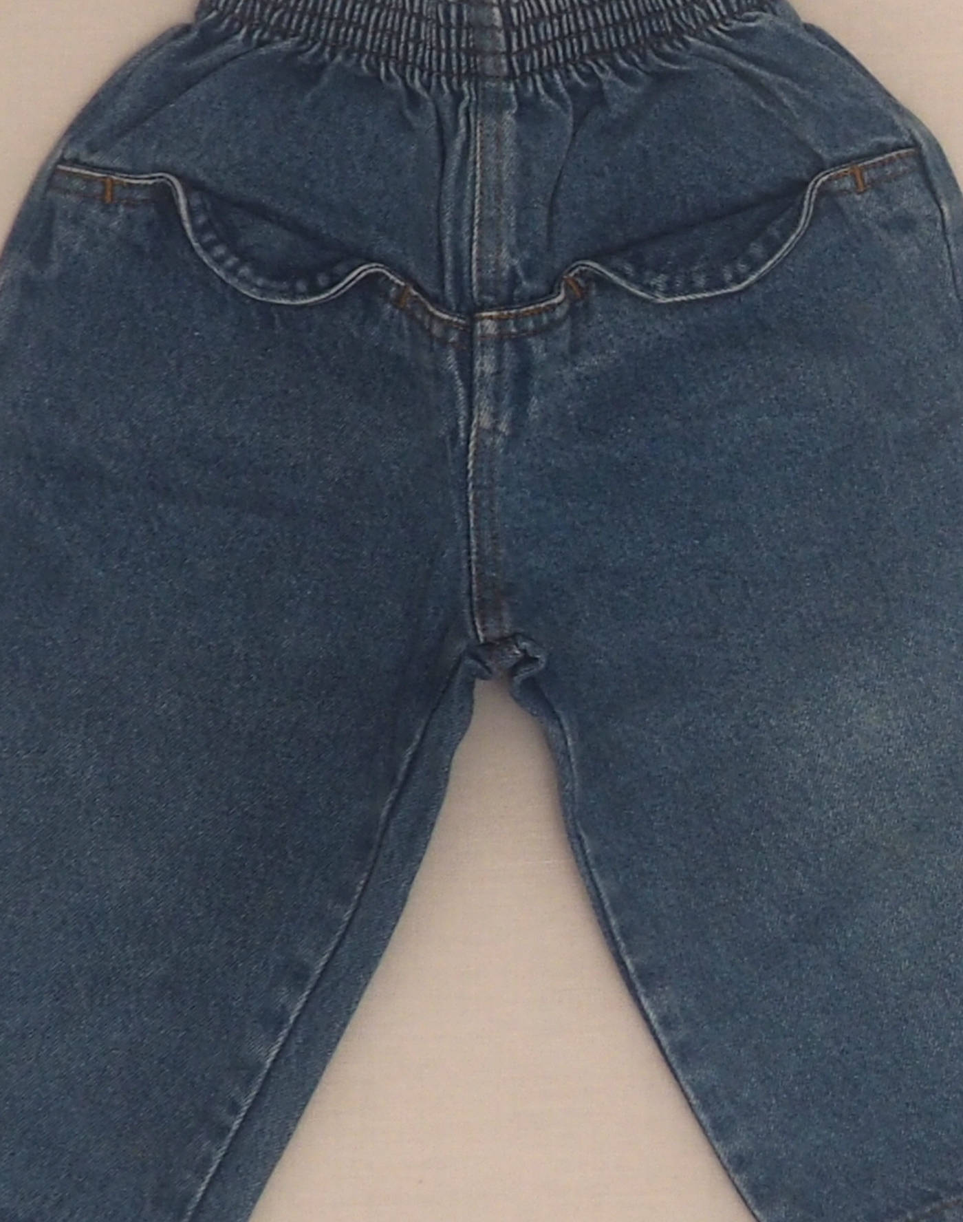 Beau jean à taille élastique, effet de couture sur les poches pouvant se rabattre devant. Très bon état, 100% coton.