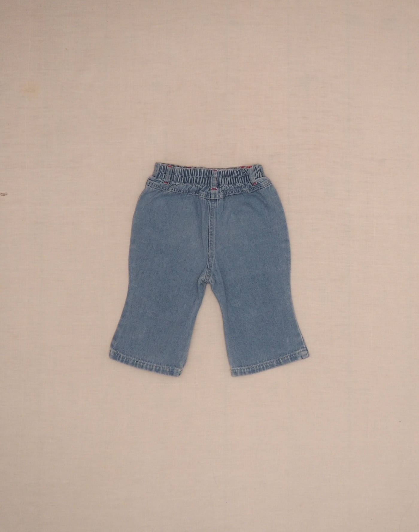Joli jean légèrement évasé brodé sur le bas de jambe de deux coeurs, deux poches plaquées devant, taille élastique. Très bon état, 100% coton.