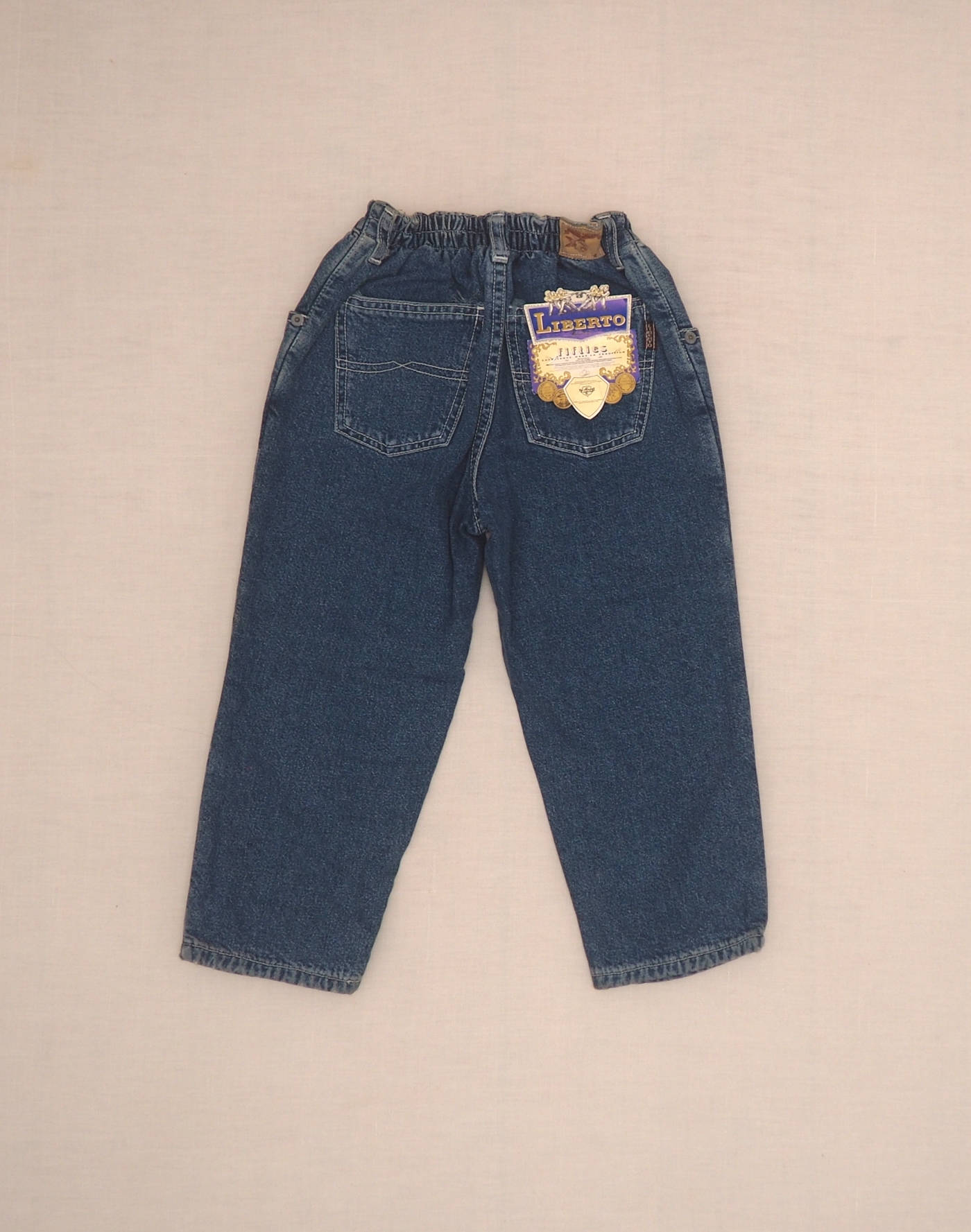 Etat neuf avec étiquette. Beau jean « Liberto » entièrement doublé en coton à motif géométriques, deux pcohes devant, deux poches plaquées derrière, taille élastique avec un bouton et braguette. Etat neuf, 100% coton.