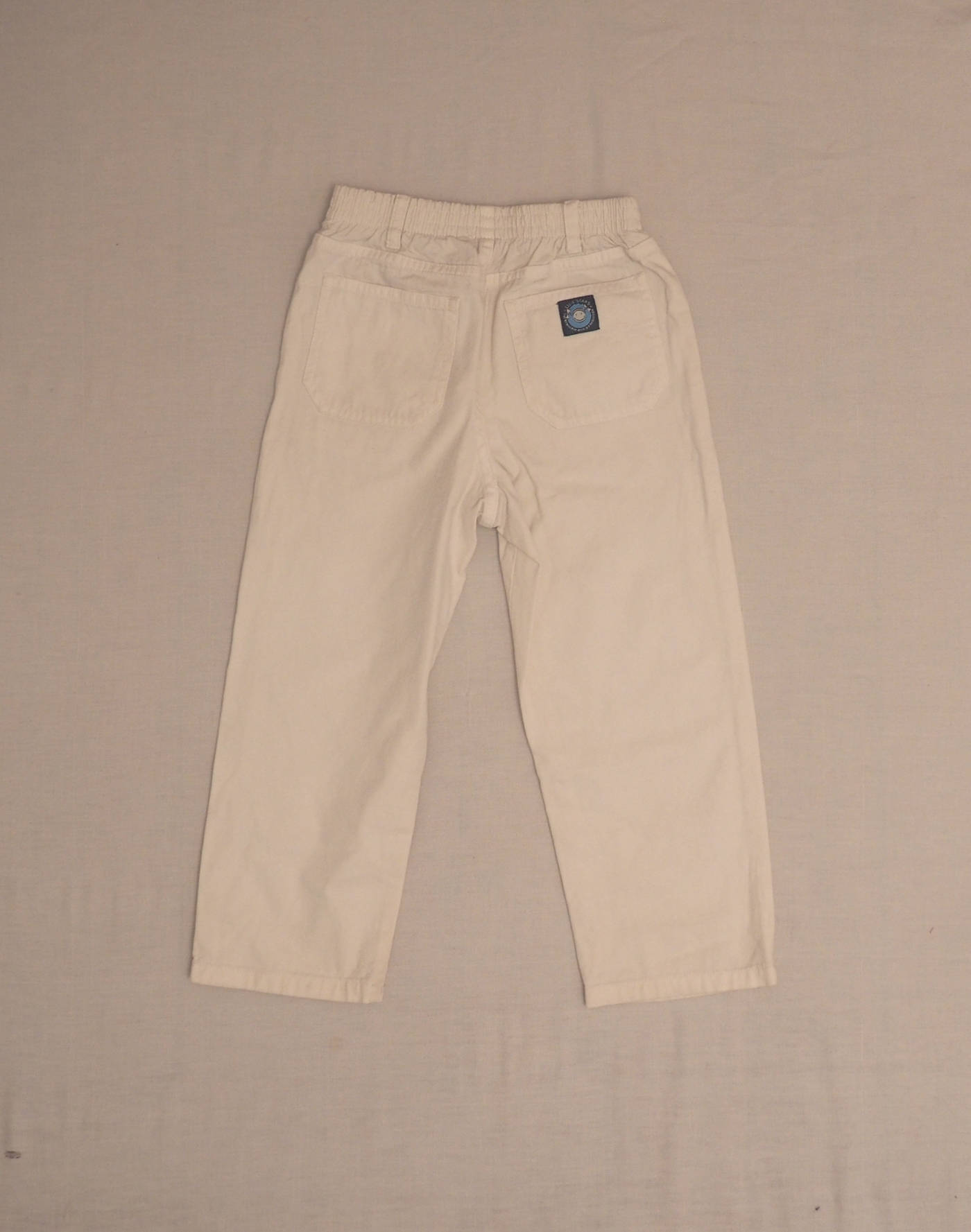 Elégant pantalon blanc à taille élastique, deux poches devant, deux poches plaquées derrière. Jambe droite. Très bon état, 100% coton.