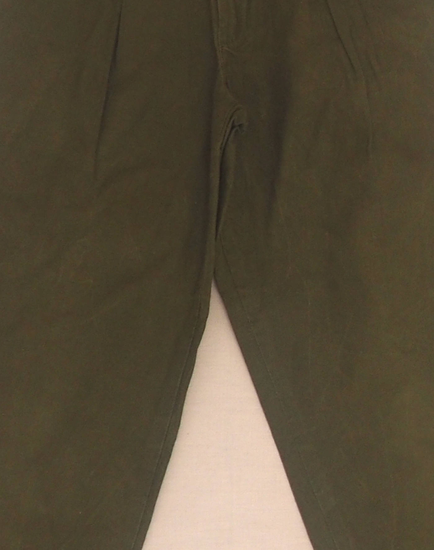 Taille 6 ans. Elégant pantalon à pinces, deux poches devant, une fausse poche à rabat derrière, taille élastique avec passants pour une ceinture. Fabriqué en France, bon état mais patiné par le soleil, 100% coton.
