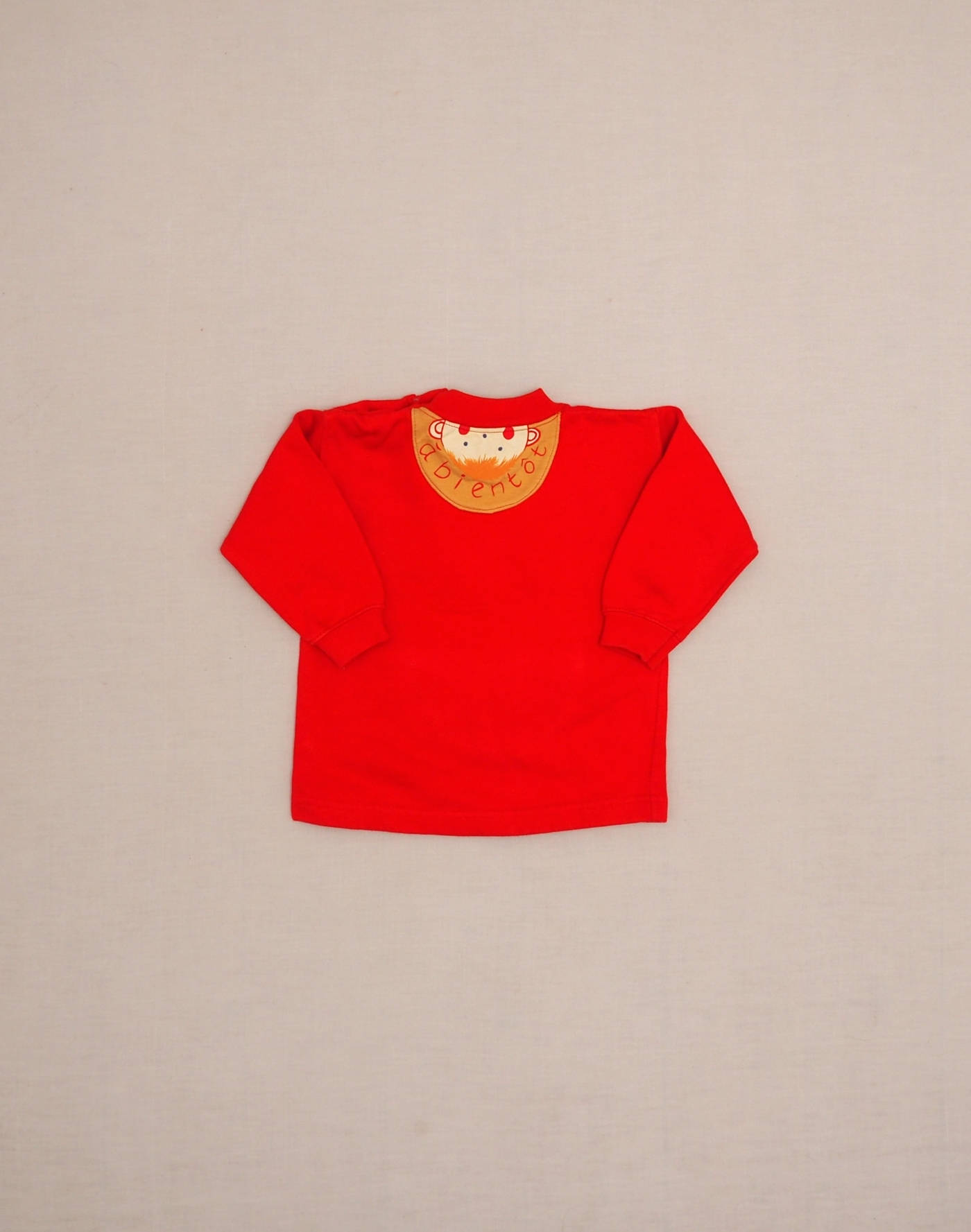 Adorable sweatshirt rouges avec imprimé petit bonhomme qui fait coucou et poche ventrale imprimée « coucou », fermé par trois boutons à l’épaule. Très bon état, tissu 50% coton, 50% acrylique. Indiqué 12 mois mais correspond à un 18 mois standard.