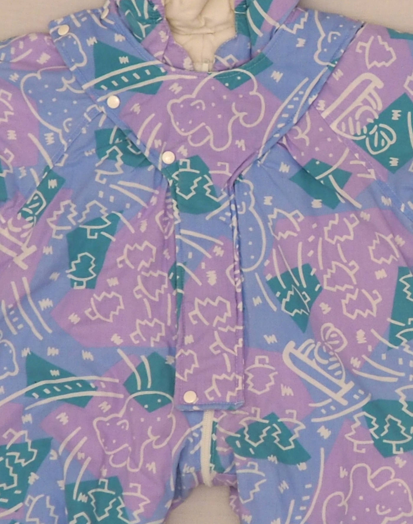 Cute fleece winter jumpsuit with typical eighties pattern, hood, elasticated cuffs and ankles, zipper with flap closed by five snap fasteners. Very good condition, 100% cotton fabric, polyester fleece.