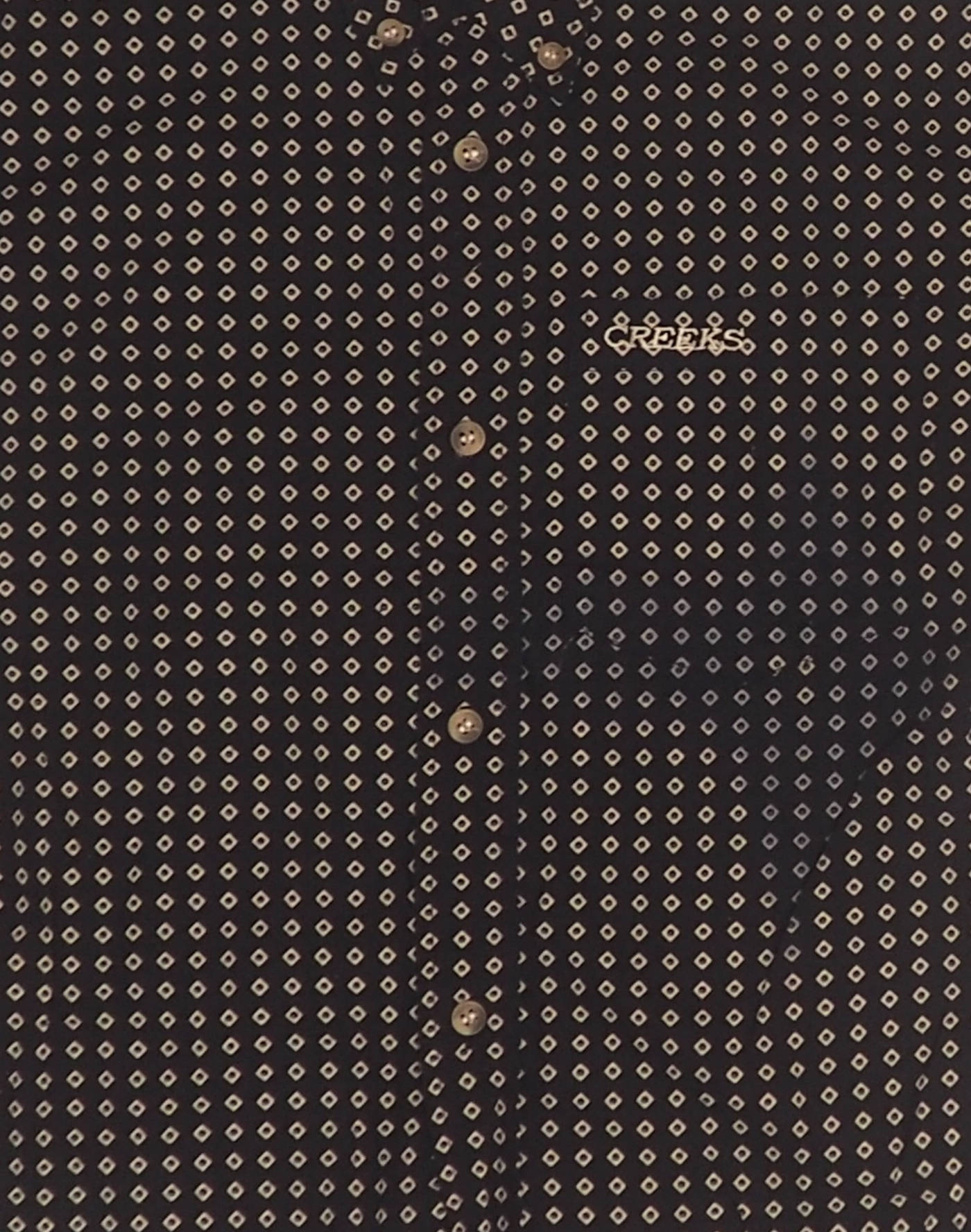 Beautiful Creeks blouse with black and white pattern, one chest pocket, closed with six pearly buttons. Very good condition, 100% cotton.