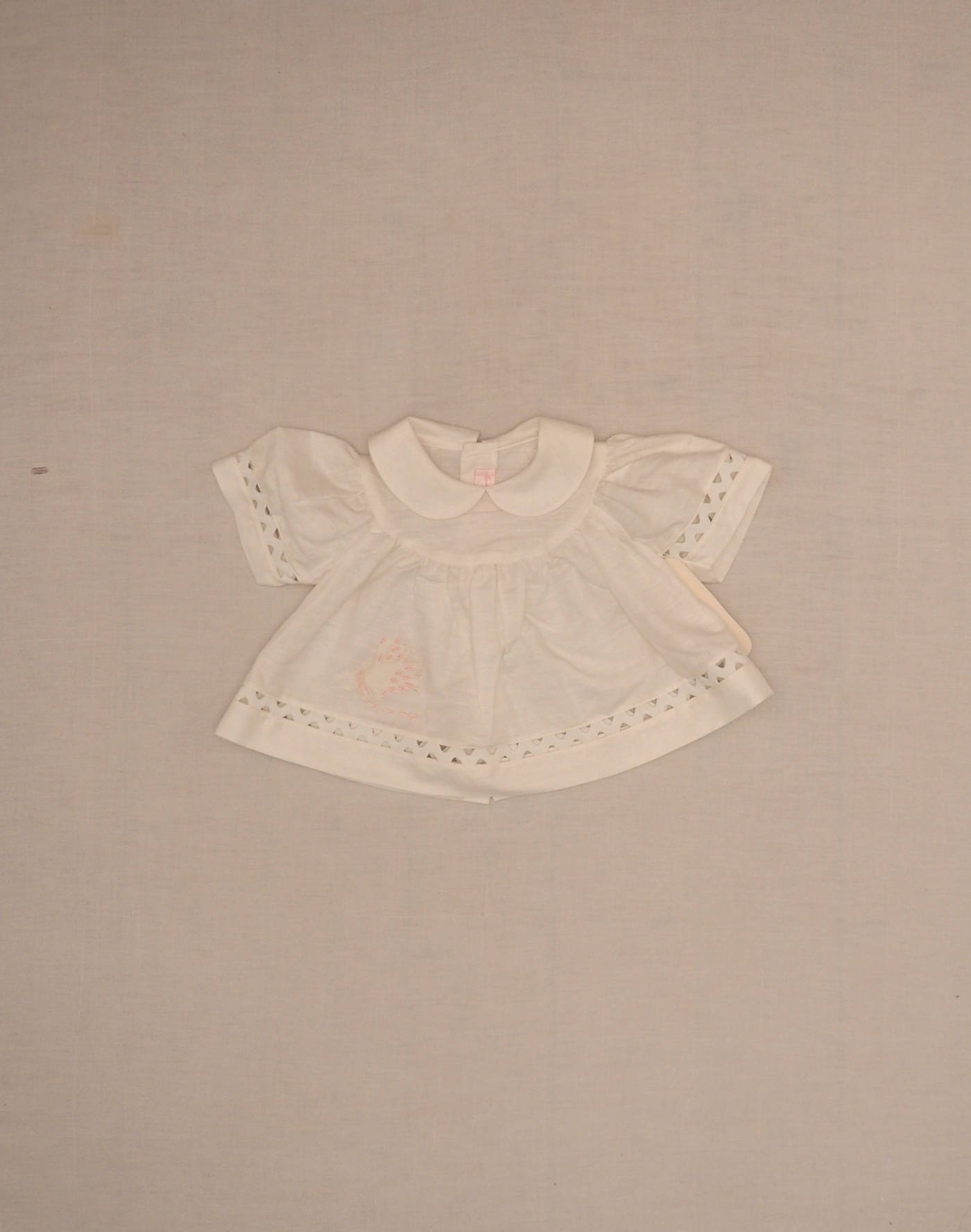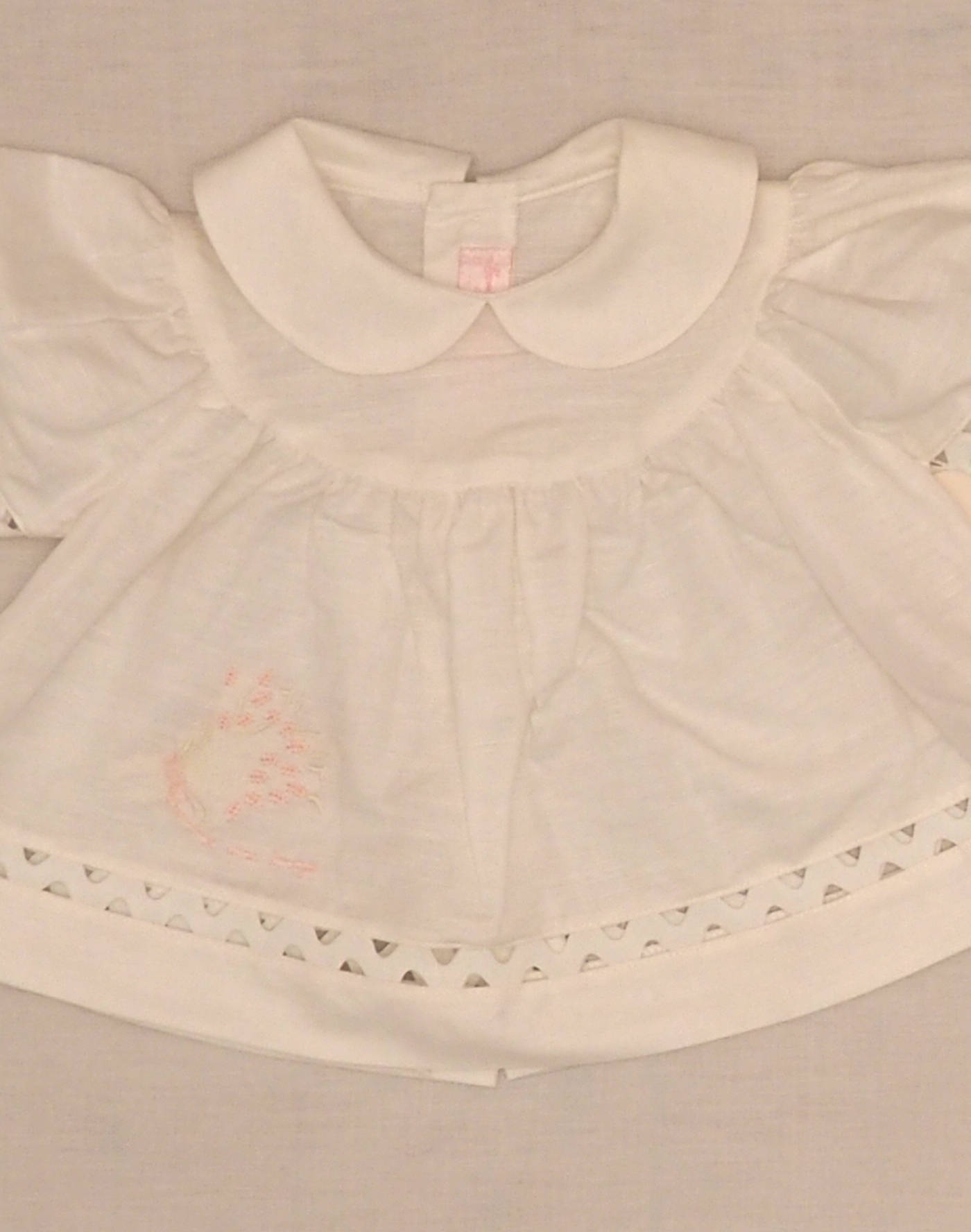 Lovely cotton and linen “Comme une image” blouse with short balloon sleeves and beautiful croquet frieze on sleeves and waist. Embroidered with a harvest bouquet on the waist, claudine collar, closed in the back with four buttons. Made in France, mint condition with label, fabric 60% cotton, 40% linen.
