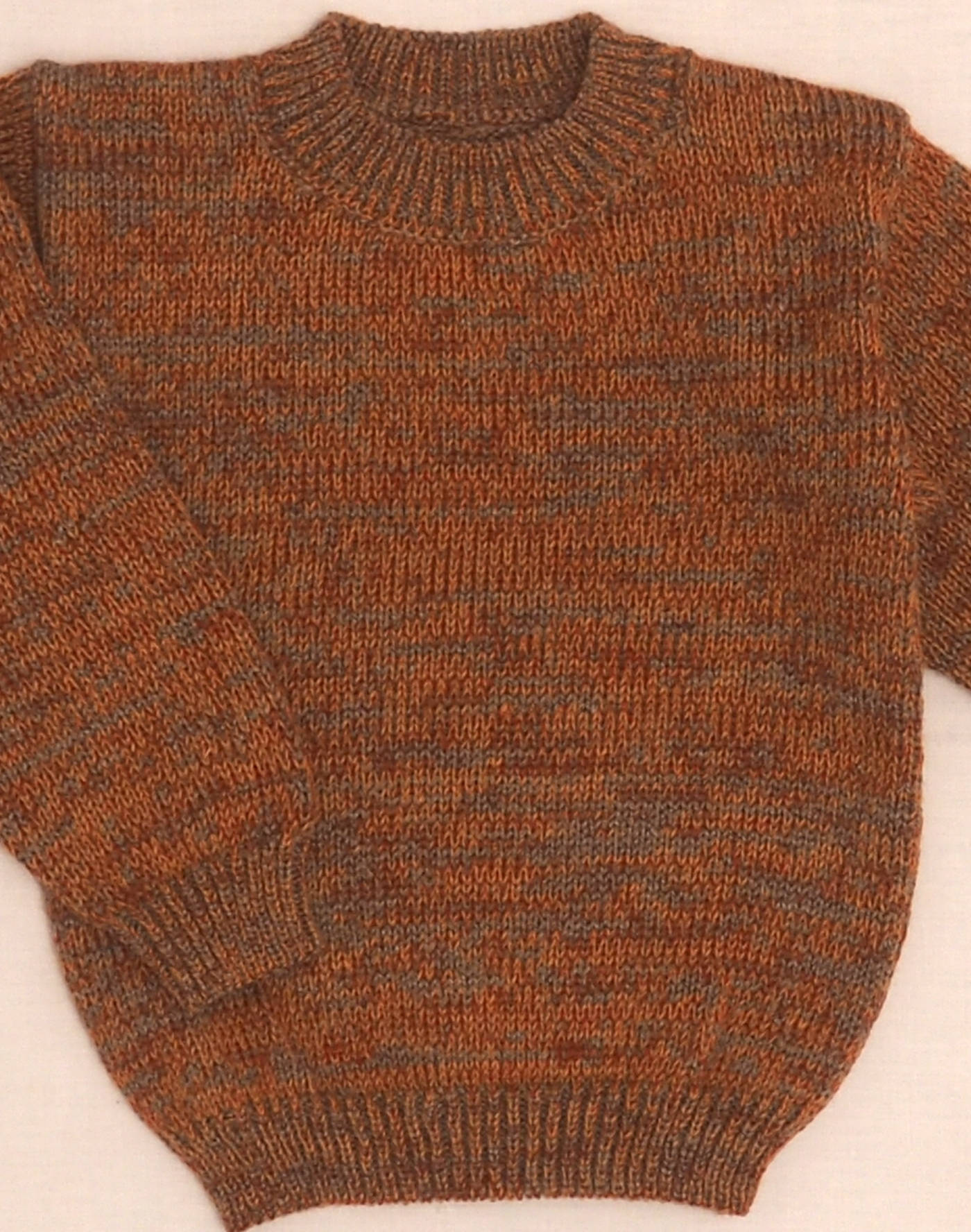 Hand-knit piece. Beautiful mottled sweater in brown tones. Very good condition, soft wool feel.