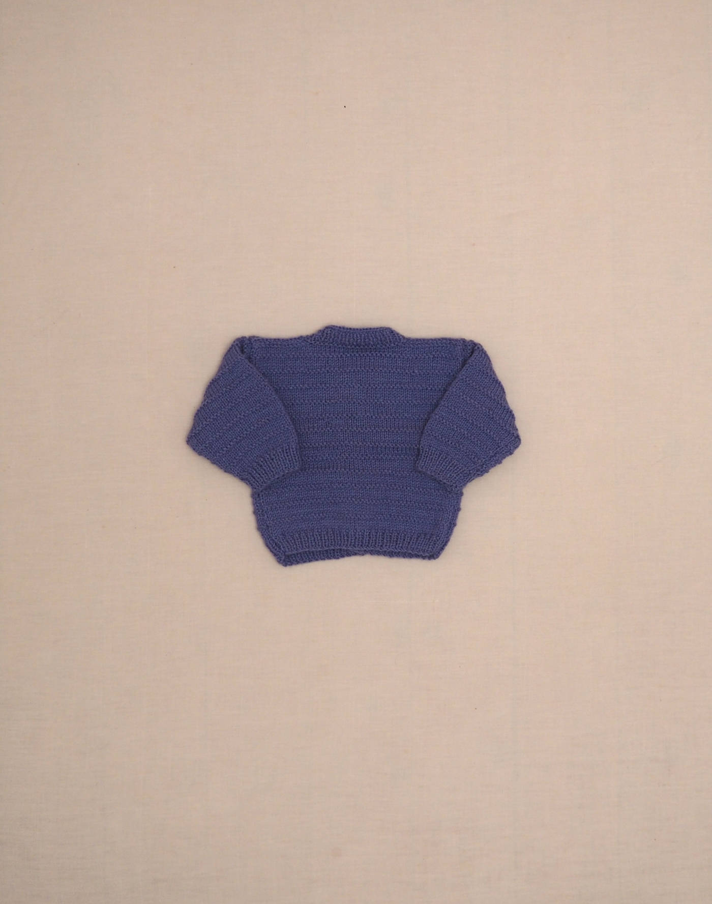 Hand-knitted piece. Beautiful lavender-blue cardigan with textured stripes, fastened with five buttons. Very good condition, soft wool feel.