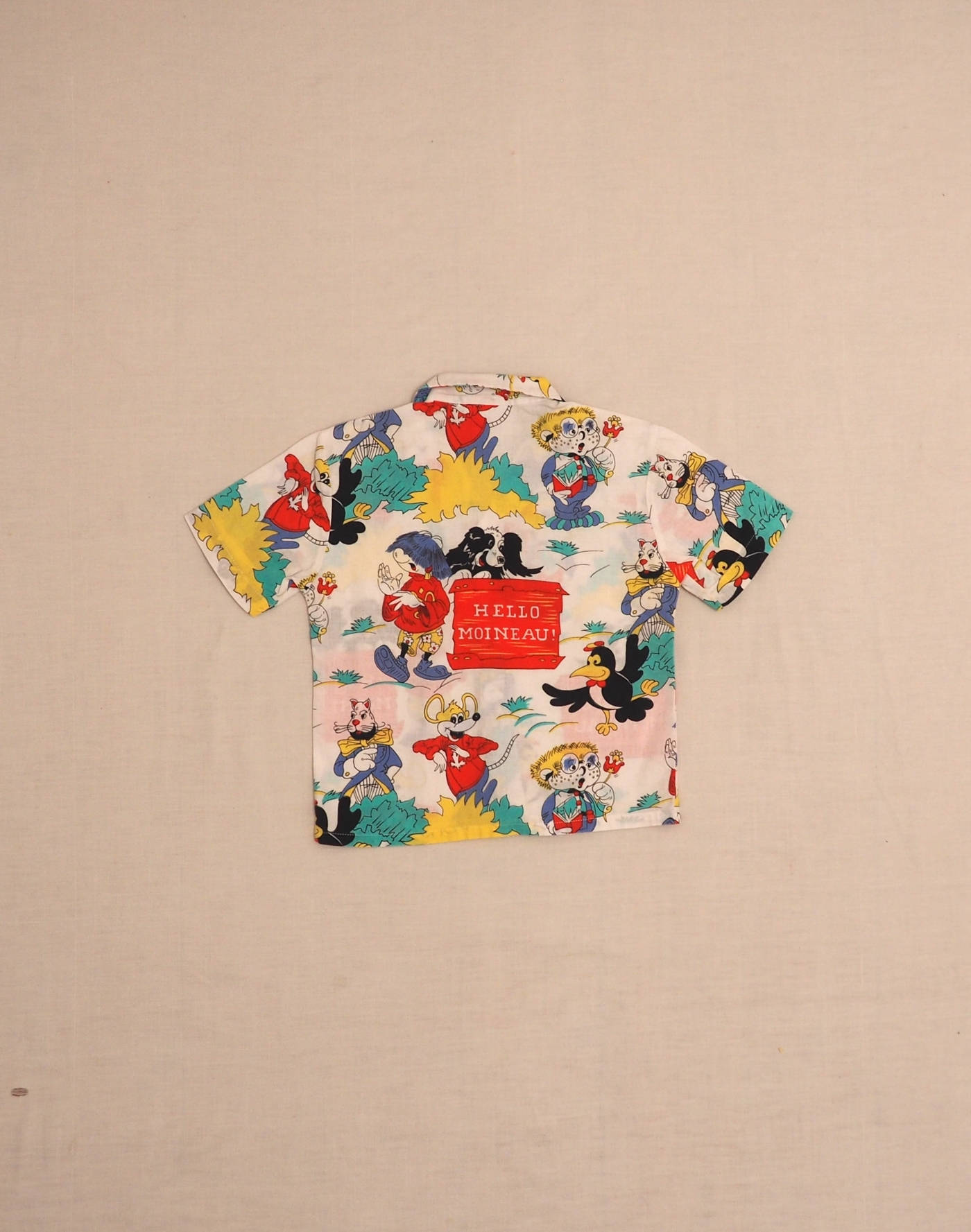 Pretty 1980s blouse with character & animal motif, fastened with three pearly buttons. Made in France, very good condition, 100% cotton.
