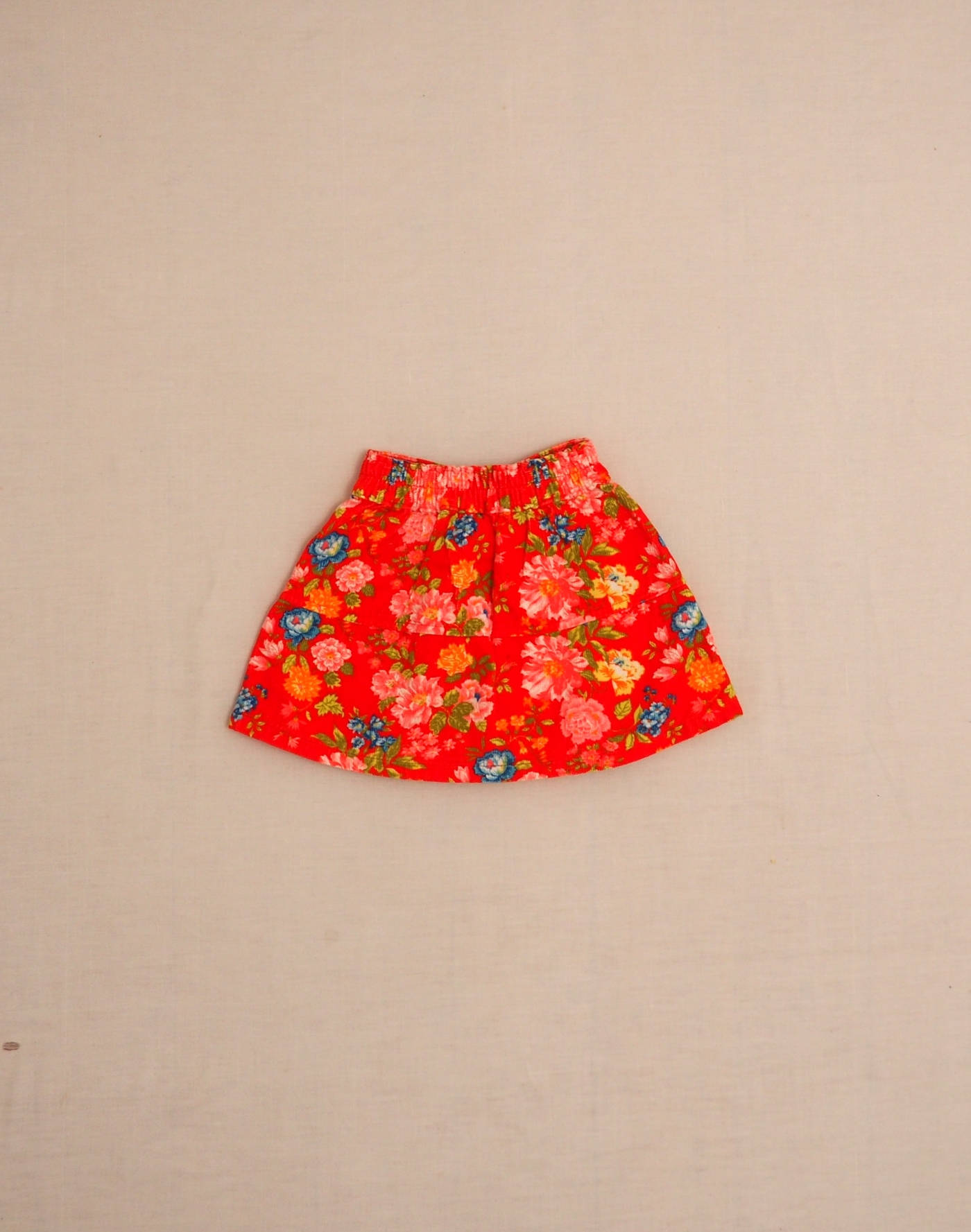 Kenzo Jungle vintage. Beautiful red corduroy skirt with floral motif, elastic waistband, darts at bottom of skirt. Very good condition, 100% cotton, made in Morocco.