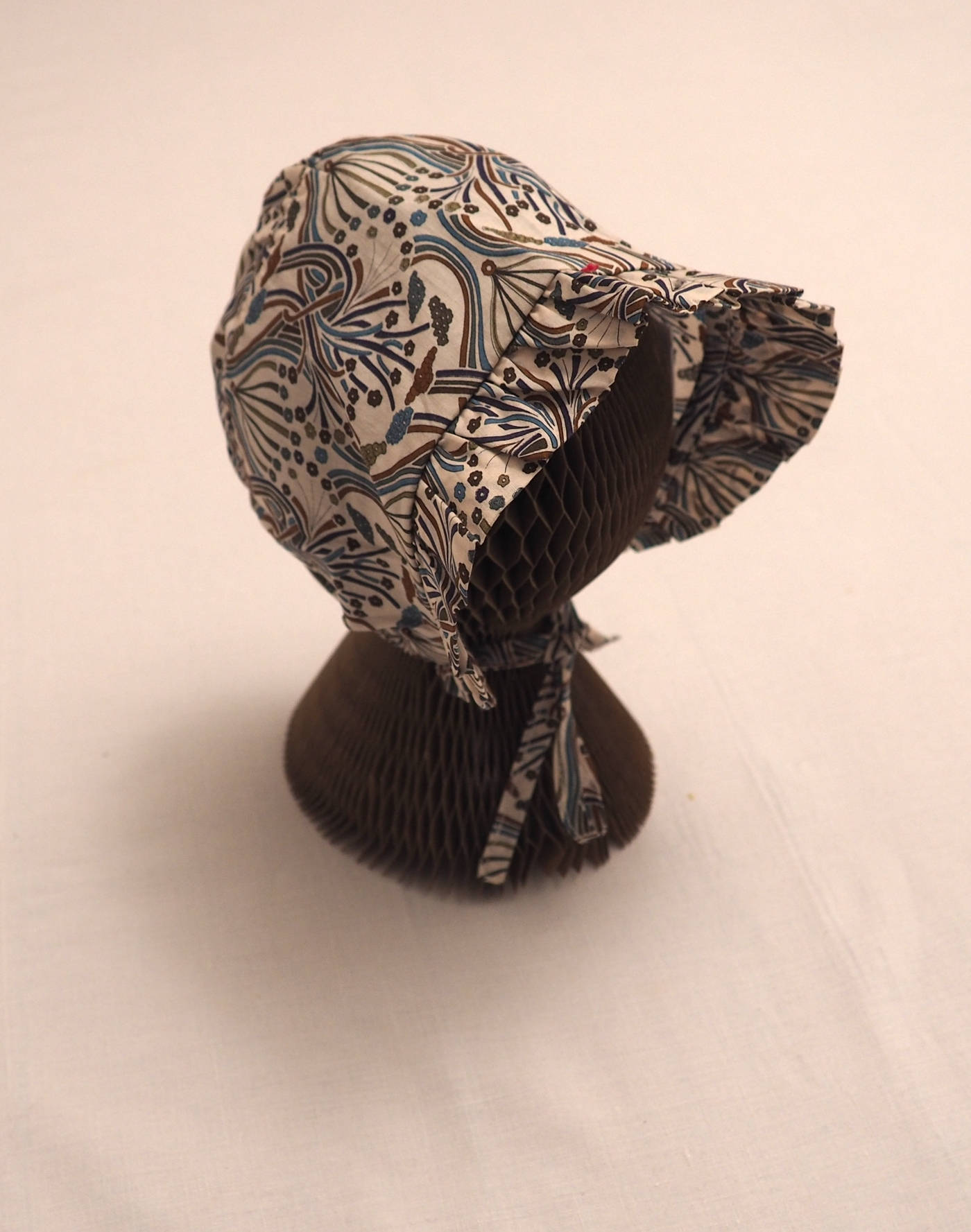 Baghère by Sylvie Loussier, from an exceptional new stock of the children’s couture brand. Lovely ruffled crush with ribbon tie, in 1970s Liberty cotton. Made in France, mint condition, 100% cotton.