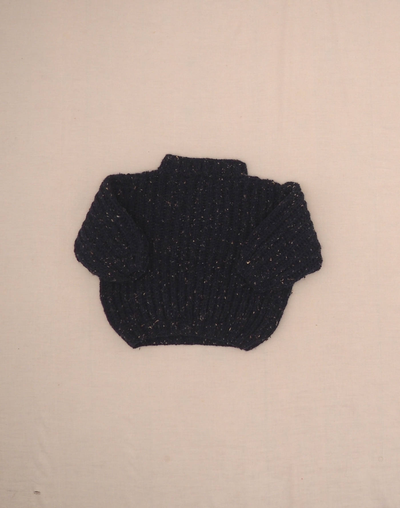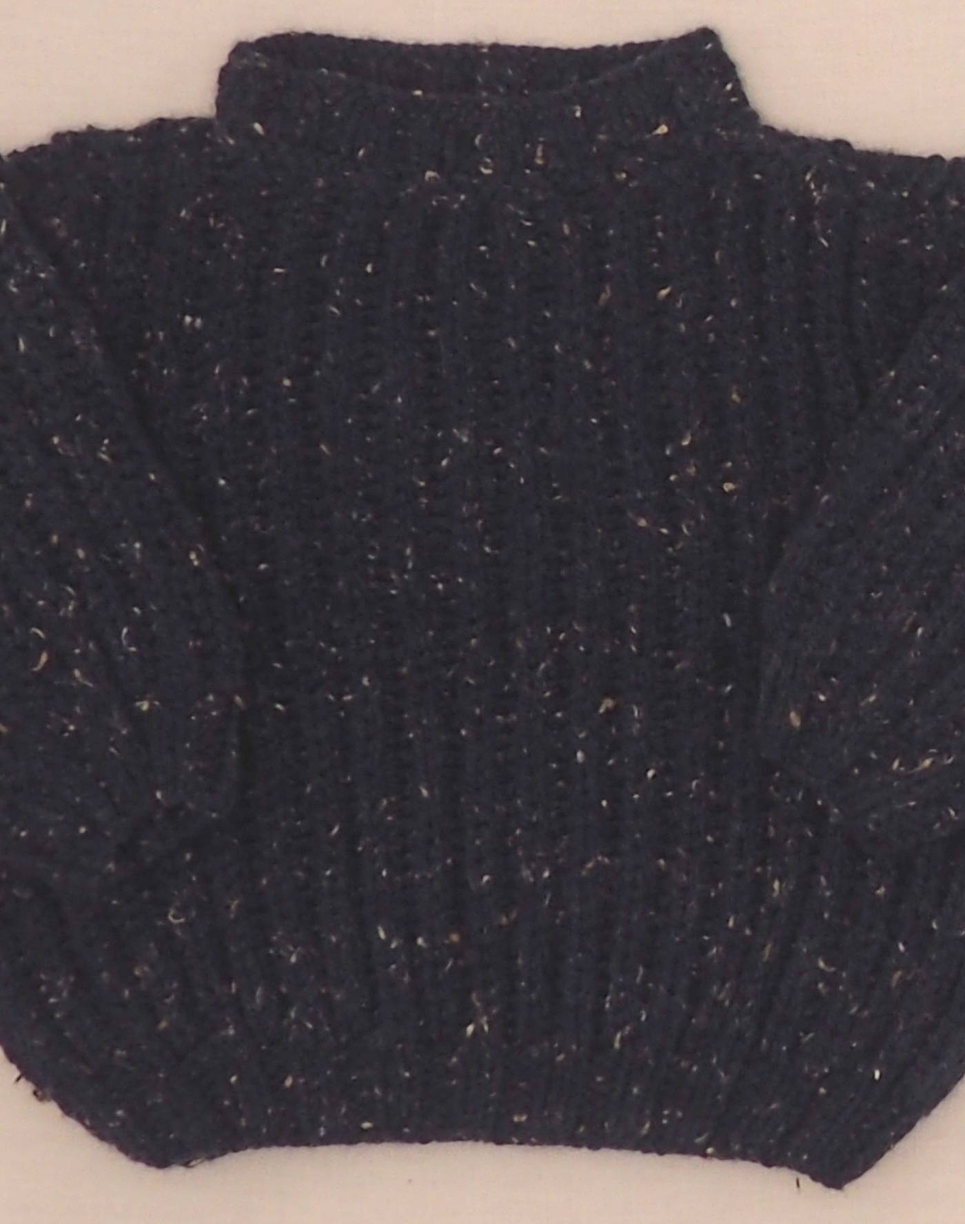 Hand-knit piece. Lovely blue mottled sweater in chunky rib knit. Very good condition, soft wool feel.
