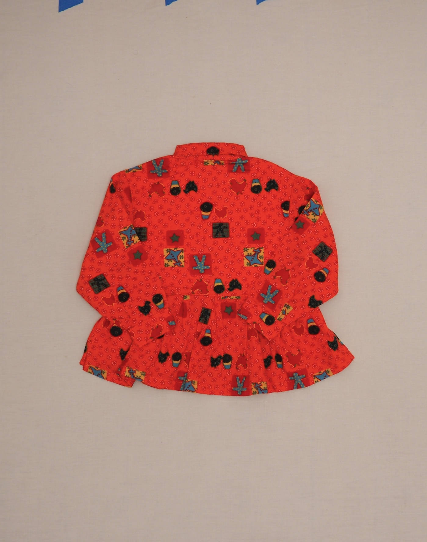Charming winter shirt in velvety cotton, fully lined, with floral motif and multicolored checks. Large flounce at waist. Very good condition, 100% cotton, made in Tunisia.