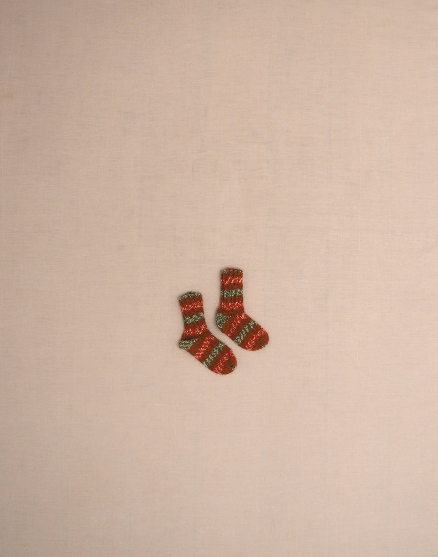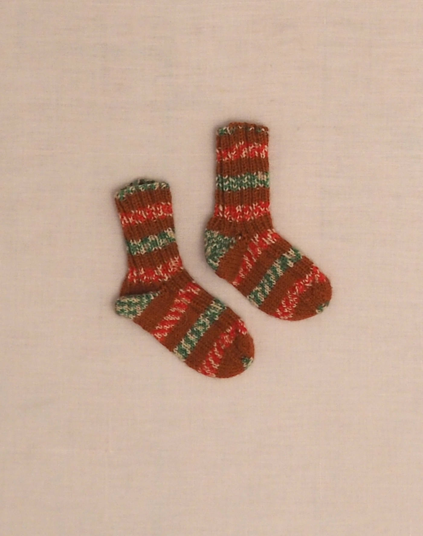 Rust-striped hand-knitted socks P20
