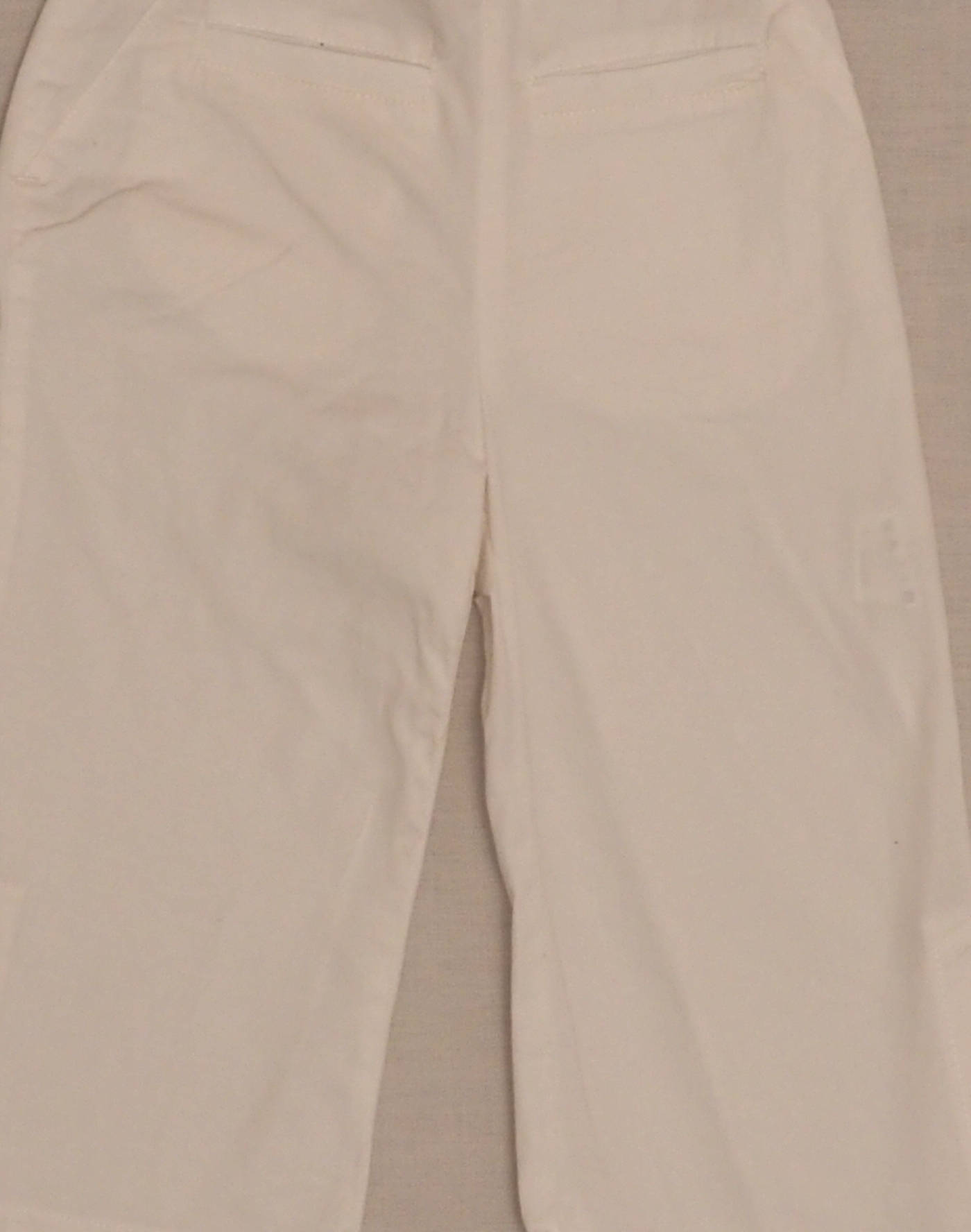 Perfect summer breeches in white cotton, elastic waistband with two decorative buttons and two front pockets, flared leg. Invisible side zipper. Very good condition, fabric 96% cotton, 4% elastane.